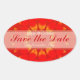 oval Save the Date Sticker in bold orange colours : would make a standout announcement for your special day. All text is fully customizable - so if you need it for any other occasion other than a wedding, just modify the text!