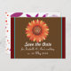 A "Save the Date" sunflowers postcard template. This is an illustration of a sunflower on a red & gold background which allows you to customized color and text.