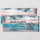 Get ready for the summer wedding of your dreams! As temperatures rise and beach season nears, more and more couples are opting for the classic destination wedding. With a beach destination save the date boarding pass, couples can ensure their guests get their invitation in style. These beach destination save the date boarding pass tickets feature a tropical palm beach setting, string twinkle lights, and a modern text template.