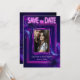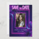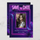 Save the Date | Your Photo - Stunning and Bold - a Neon 'glow in the dark' Save the Date invitation that will grab everyone's attention - Announce your Wedding Date in Style! Tropical foliage in Hot Pink, Fuchsia, Purple and Teal highlighted on a deep midnight blue background - with neon hot pink triple frame inset - this is a bold design and will most definitely garner attention. Looks great on all paper types but really shines on the semi gloss paper choice. Our template is easy to customize, but if you need help feel free to contact us. Design created by © WhimsicalArtwork™.