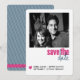 Pick this elegant photo save the date from PiPo Press. It features a bold message in a clean, modern, all caps font in hot pink with a handwritten "date" in navy. When your guests receive this 5" x 7" card with rounded corners, they will know exactly how special your celebration will be.