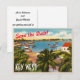 Fun Key West wedding save the date card with a vintage illustration of Garrison Bight harbor in Key West, Florida, with boats in the harbor, palm trees, and a few buildings. Fun retro postcard vibe for a Key West wedding. Edit all the information on the back.