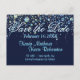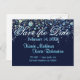 Save the date in blue and green glittery looking bubble stars artwork. Design by Amelia Carrie