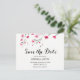 Using the delicate art of watercolors, pink and red cherry blossoms are found on the front of this chic and modern Save the date postcard.. Personalize this card with the bride (fiancee) and groom's (fiancé) names (first names and full names), wedding date, location, return address, and wedding website (can be removed if not required).