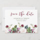 Save The Date Watercolor White Roses Cranberry Invitation, designed with clusters of delicate white roses, bright cranberry red flowers, and highlighted with soft green leaves. The front side text includes: Save The Date, The Bride and Grooms Names, Are Getting Married and Wedding Date. The reverse side includes the Wedding Location, and Formal Invitation To Follow. To personalize, simply insert your details into our easy template, replacing the sample text.