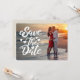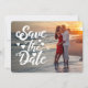 Postcard announcement of your wedding date. Use your full horizontal image with "Save the Date" superimposed on the photo. Optional dark gradient for white script to stand out if your background is too light. Just remove the gradient if you don't need it. Backside color is customizable.