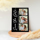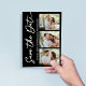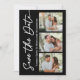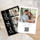 This design features a Save the Date, Weddings card with a modern minimalist style, a 4 photo collage, with black and white, a simple, typography design, with unique, calligraphy script, and a scannable QR code to share your wedding details.
