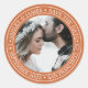 Elegant, modern and simple save the date envelope seal or label with your engagement photo and wedding date in stylish typography on a burnt orange background. Simply add your wedding photo, names and wedding date. Exclusively designed for you by Happy Dolphin Studio. If you need any help or matching products please contact us through our store chat. We're happy to help you make your wedding the most beautiful day!