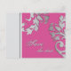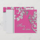 Save the date for your wedding day with this fuschia pink and silver speckled floral save the date post card. This design is in template format and features a solid background with a banner along the left side of the design and sparkling silver floral and leafy swirls. Send this affordable and easy save the date post card to all your family and friends.