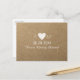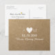 A simple wedding postcard with a rustic look (printed image of kraft texture) for Save-the-Date invitations... featuring a white graphic heart with customizable lines of text... with a touch of simplicity and elegance