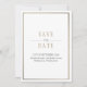 Save the Date White Bronze Gold Invitation. Elegant modern typography design. Antique gold and charcoal colored text on white with thin golden border and printed back featuring an original mixed media antique gold modern abstract artwork print. Personalise with your own text. A beautiful save the date design excellent for weddings, engagements, anniversaries, and other special occasions.