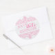 Save The Date White Damasks & Pink lace Classic Round Sticker