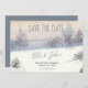 Save The Date Winter Wedding Announcement Card created with a Watercolor Winter scene in shades of blue. The text includes: Save The Date, the Bride & Groom's Names, Wedding Date, and Formal Invitation To Follow. The reverse side is a matching blue background. To personalize, simply insert your details into our easy template replacing the sample text. This Engagement Announcement Card is available as a downloadable file.