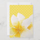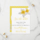 NewParkLane - Elegant 'Save the Date' wedding card, with two beautiful Hawaiian tropical flowers in watercolor, against a white background. On the backside two matching flowers, against a sunny yellow background with an stylish white trellis pattern.