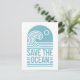Save the ocean protection conservation world oceans day beach clean up activist quotes gift boho retro blue aesthetic small print card postcard.