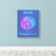 A chance to highlight the plight of the pangolin anteater a very rare critically endangered species due to illegal animal trafficking. This cute walking pangolin in colorful psychedelic blue pink and purple hues on a blue background, shows the intricate body armour of the pangolin to protect itself from predators with a light blue slogan ‘ Save the Pangolin’ Original artwork wildlife illustration by artist Catherine Sweetman