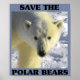 A close up of a polar bear with the words Save the Polar Bears surrounding it. Without protection, the polar bears may not survive to the 22nd century. Get them put on the protected list.
