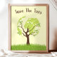 Save The Trees Ecology Environmental Eco Poster. Simple modern environmental poster design that features an isolated tree in the grass. Choose your own background color and personalize this custom design with your own text.