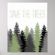 This poster features a forest design and contains the message "Save the Trees", making it a great poster for Earth Day!