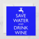 Fun for Earth Day. SAVE WATER AND DRINK WINE with a water tap leaking water. Design based on the 1939 British morale poster "Keep Calm and Carry On".