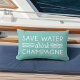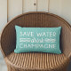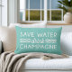 Pitch in with conservation efforts simply by switching from water to champagne! Super cute typography lumbar pillow features the quote "Save Water, Drink Champagne" in white lettering with ocean wave detailing on a vibrant turquoise aqua background. Outdoor fabric makes this pillow a festive and fun addition to your pool, beach house, patio or boat!
