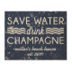 Do your part for water conservation and hang this super cute wooden sign at your beach house, vacation home or patio. Design features the quote "Save Water, Drink Champagne" in vintage style typography with your family name or house name and year established. Navy blue background with a vintage distressed effect lets the wood grain shine through for a unique look.