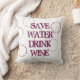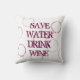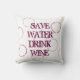 SAVE WATER DRINK WINE funny quote square throw pillow for sofa, couch or bed.