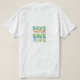 The eye-catching t-shirt design features the message "Save Water, Save Life" in a vibrant multicolor scheme. Each word is a different color, creating a dynamic and playful visual. The design avoids any images of people, focusing solely on the impactful message in a captivating color combination.