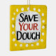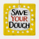 "Save Your Dough" is a fun text design with a white accent shape surrounded by white whimsical textured dots.