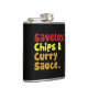 Saveloy, Chips & Curry Sauce. Hip Flask