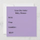 This pink and blue Save the Date Card is designed for a baby shower. The scrollwork image on the front of the card resembles an elaborate cake decoration with frosting flowers.