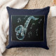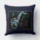 modern freestyle drawing of a saxophone with music notes floating on a black background.