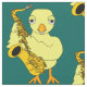 A cute yellow chick holding a saxophone is a funny music design for sax musicians, music teachers and students. Image size and background color are customizable.