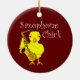 Saxophone chick in curly text with a cute yellow chick holding a sax is a funny music gift design for woodwind musicians at back to school, marching band, birthdays, graduation and holidays.