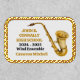 This modern custom gold high school marching band graduation patch features the student and band name under the saxophone instrument. Customize for symphonic, wind ensemble, or concert band members or their director for a great graduation keepsake gift.