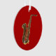 Design with i saxophone on red background; elegant simple jazz musical instrument design