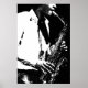 Saxophone - Photograph in black and white of a saxophone player with distorted and grainy effects
