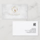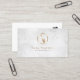 This elegant professional saxophonist business card features an elegant marble texture background. A gold saxophone icon appears on the top half of the card. Your name and title appear in the lower middle section, below the gold monogram square. Perfect for professional, entertainment, showbusiness, concerts, talent, music, musician themes.