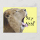 A fun, unique and attention-getting funny postcard with an original photo of a male lion with his mouth wide open, and his tongue sticking way out with "Say Ahh!" in loud bold text blasting right next this King Of The Jungle's open mouth showing his big teeth. A perfect postcard for patients for dentist offices for dental appointment reminders and great for veterinarian office. Also great for other doctor's offices check up reminder appointments. Perfect for pediatrician's offices, even veterinary offices. Easily put in your custom information on the back~ delete all if none is needed. Light yellow background color on both sides of the card can easily be changed to any color. Just click on "Customize it" and then "edit" and then "background" to change to any other light color.