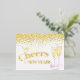 Say cheers to the New Year champagne glasses gold foil postcard invite. Pretty hand painted watercolor champagne glasses with filled with golden yellow Champagne and gold foil bubbles and say cheers to the New Year text, new years party invitations. Personalize with your own New Year's party details. Original watercolor art and design by Sarah Trett for www.mylittleeden.com on zazzle.