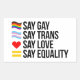 Say Gay Say Trans Say Love Say Equality Rectangular Sticker