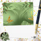 Digital art lady bugs and butterflies over a green layered background. This postcard can be used for any occasion. The back is blank for your handwritten note or add text when you edit using the design tool.