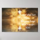 Poster print with saying, "Forget what hurt you, but never forget what it taught you." Beautiful science at night over body of water with a cross in the cloudy sky. An Inspirational reminder of life lessons!