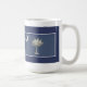 This mug features a reproduction in grunge texture style of the state flag of South Carolina, the Palmetto and Crescent, In faded-look blue on a darker blue background.