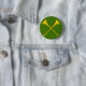 "Vert, two straight trumpets in saltaire, bells in chief." Branch officer badge for the seneschal of a group within the Society for Creative Anachronism.