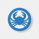 “(Fieldless) A crab within and conjoined to an annulet azure.” Background color (shown white) can be changed on request.