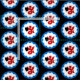 “Argent, a seadragon erect gules, maintaining an escutcheon sable within a bordure wavy azure.” Allover pattern of a populace badge for the Canton of Seashire in the Society for Creative Anachronism.