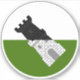 "Per fess argent and vert, a tower bendwise counterchanged sable and argent."