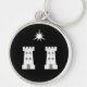 "Sable, two towers and in chief a mullet of three greater and six lesser points argent."