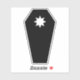 “(Fieldless) a six-sided coffin palewise sable charged in chief with a mullet of six points argent.”